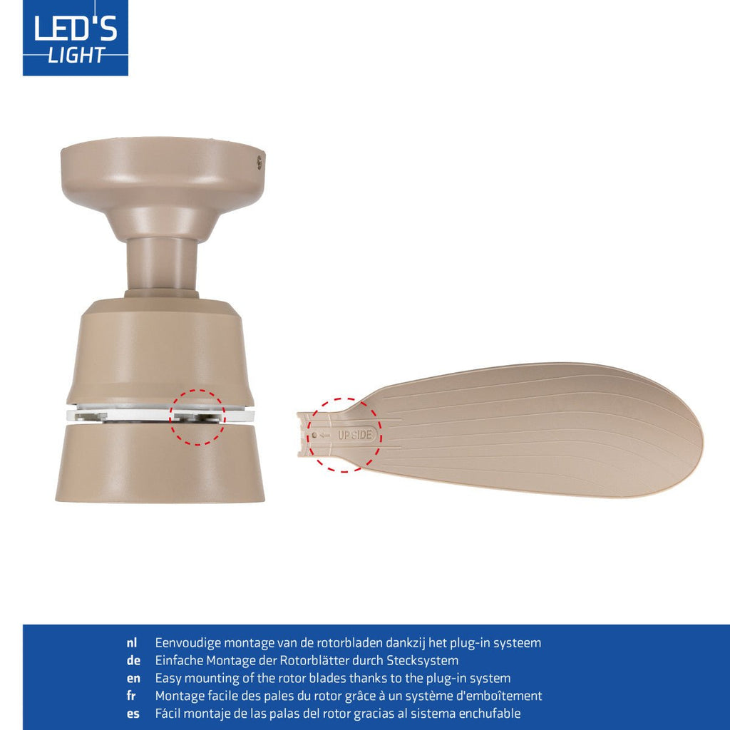 Met zijn strakke, neutrale design en taupekleur past deze plafondventilator moeiteloos in diverse interieurs. Bovendien kunnen de verlichting en ventilator onafhankelijk van elkaar worden gebruikt, zodat je altijd de juiste balans tussen licht en ventilatie kiest.