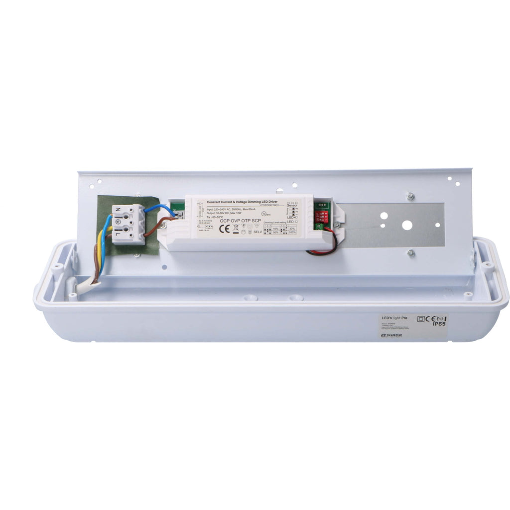 Niet alleen de lichtkleur is instelbaar, ook de intensiteit kun je naar wens instellen. Door middel van een knop op het armatuur kun je het licht desgewenst dimmen naar 50% (500 lumen), 30% (300 lumen) of 10% (100 lumen). Op 100% vermogen heeft de mini LED TL lamp een indrukwekkende lichtopbrengst van 1000 lumen.