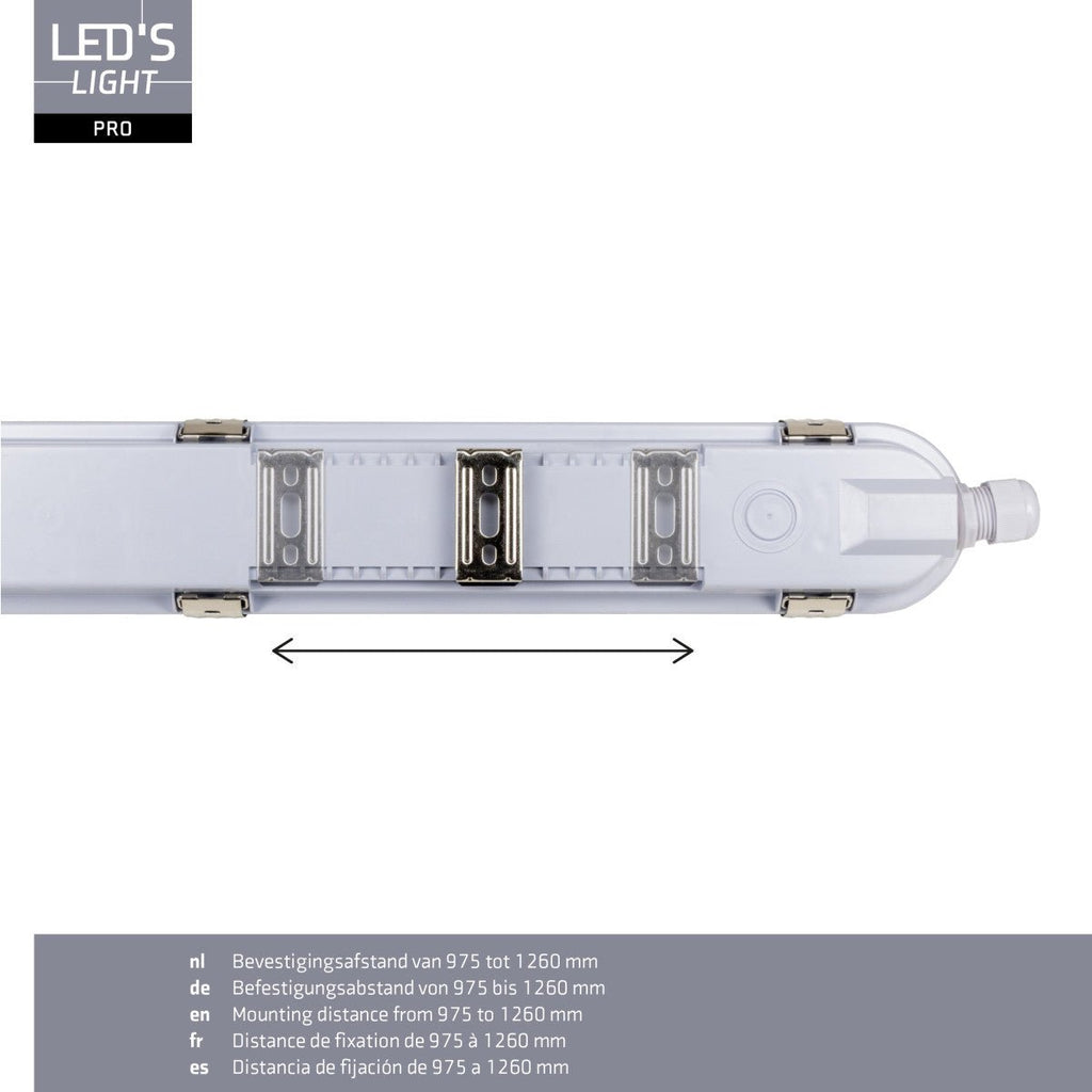 Hoogwaardig LED-armatuur met een slagvaste behuizing van polycarbonaat, voorzien van clips en montagebeugels uit roestvrij staal. Ontwikkeld voor professioneel gebruik, met meerdere opties voor kabelinvoer en doorvoerbedrading via een 3×2,5 mm² kabel. Dankzij gereedschapsvrije steekcontacten is een snelle en efficiënte installatie mogelijk.