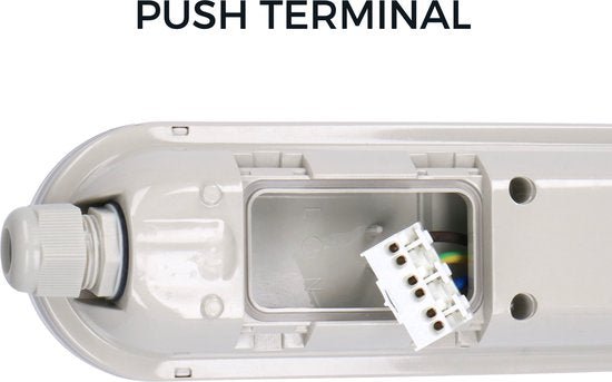 Het installeren van deze LED TL armatuur is zo gebeurd dankzij de praktische drukklemmen. Je bevestigt hem snel en eenvoudig, zonder gedoe met extra gereedschap. Bovendien kun je meerdere armaturen aan elkaar koppelen, zodat je grotere ruimtes efficiënt kunt verlichten en al je LED TL lampen tegelijkertijd kunt bedienen.