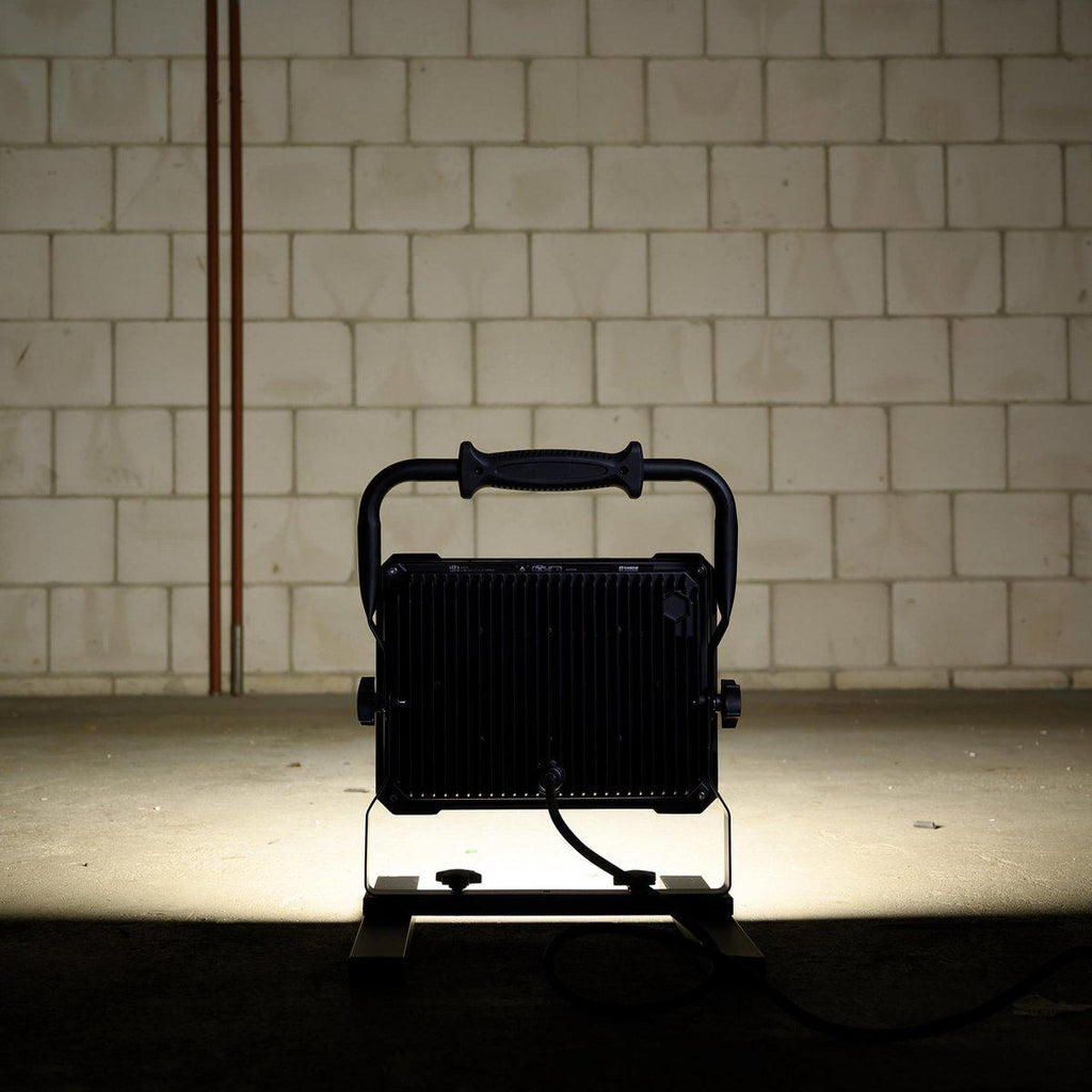 13000 lumen aan licht met een verbruik van slechts 150W. Klinkt als te mooi om waar te zijn, niet? Maar dankzij moderne LED-technologie is het tegenwoordig mogelijk. Je traditionele, stroom-slurpende bouwlamp kun je dus vaarwel zeggen. De lichtdiffuser zorgt ervoor dat je ondanks de enorme hoeveelheid licht geen last hebt van verblinding. Het licht heeft overigens een neutraal witte kleur (4000 K), wat perfect is voor werkverlichting.